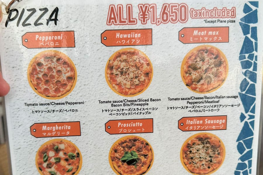 料金はわかりやすく、プレーン(トマトソース+チーズ)が1,320円で、それ以外は全て同じ料金1,650円とのこと。他に、デザートピザがや子供用ピザが550円。