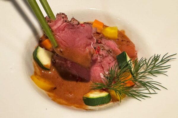 ヤギの煮凝りと島野菜、ワタガラスソース