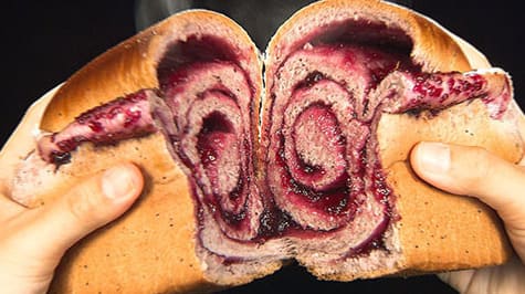 沖縄担当・比嘉Dのオススメの食べ方は、トマトや生オニオンと一緒にパンに挟んでバーガーにして食べる食べ方。