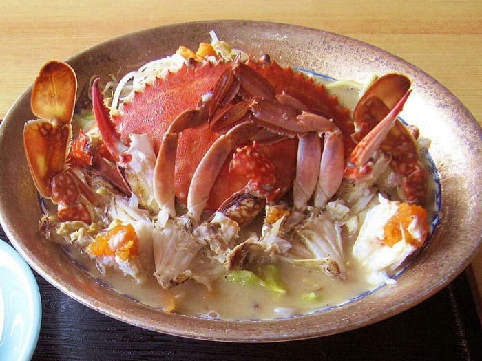 カニをそのまま食べるも良し、ほぐして麺と絡めて食べるも良し。