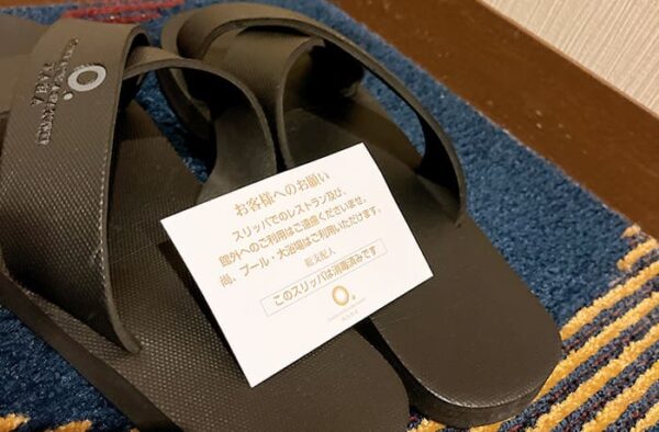 スリッパは大浴場やコンビニに行くときなどに便利。