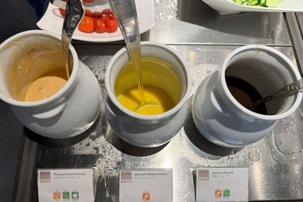 ドレッシングは「サウザンアイランドソース」「和風ドレッシング」「シークヮーサードレッシング」「タンカンドレッシング」の4種類。