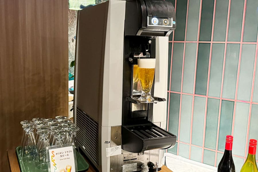 生ビールのサーバーはジョッキを置いてボタンを押すだけで定量注いでくれるタイプ。楽ちんです。