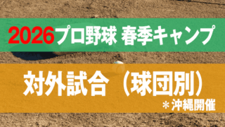 プロ野球 キャンプ 2026年プロ野球 春季キャンプ「練習試合・オープン戦スケジュール(球団別)」*沖縄開催分 毎年2月はプロ野球・春季キャンプの季節!こちらのページでは沖縄県内で開催されるプロ野球 2026年春季キャンプ「対外試合... 2026.01.21 イベントプロ野球 キャンプ